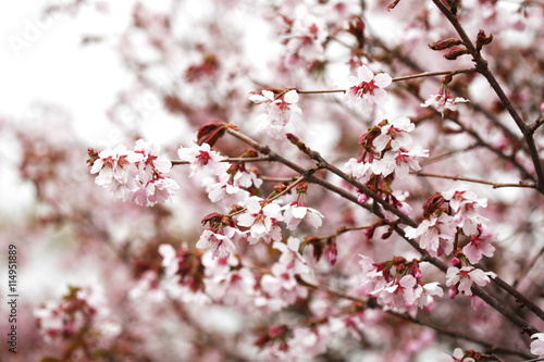 Obraz premium Pink cherry blossoms in garden outdoors close up