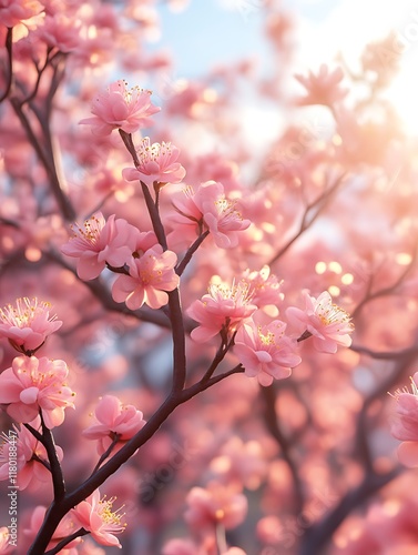 © Wi, Fototapeta premium Pink cherry blossoms in sunlight.