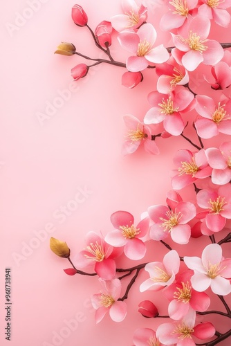 © TKMedia, Obraz premium Pink Cherry Blossoms on a Pink Background