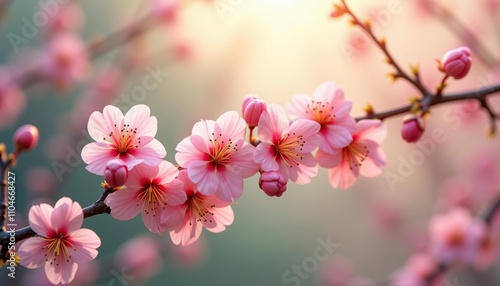 © SwathiFX, Obraz premium Pink cherry blossoms on tree branch
