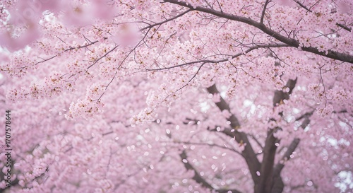 © Ardiyanto, Obraz premium Pink cherry blossoms overhead view