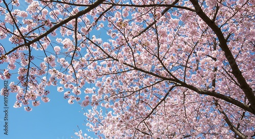 © Kapten, Fototapeta premium Pink cherry blossoms sky background