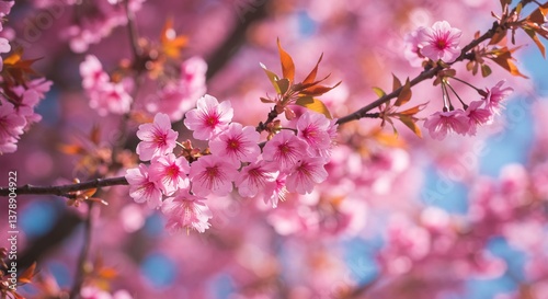 © NguyenHaiPhuong, Obraz premium Pink Cherry Blossoms Soft Light Spring Bloom. AI Generated
