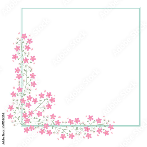 Obraz premium Pink Cherry Blossoms With Green Square Floral Border Frame