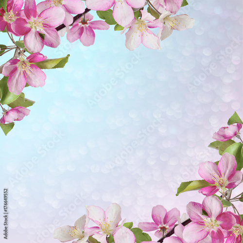 © rvo233, Fototapeta premium Pink cherry or apple blossom greeting/invitation card