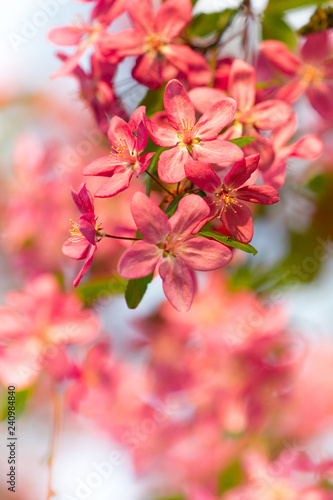 © domagoj8888, Fototapeta premium Pink cherry tree branch blossom in beautiful spring season background