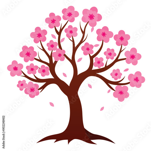 © MohammadMonirul, Fototapeta premium Pink cherry tree realistic-on-fully-white background