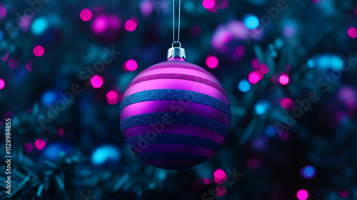 © Melipo-Art, Fototapeta premium Pink Christmas Bauble with Festive Lights