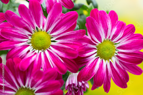 Obraz premium Pink chrysanthemum on yellow backgrounds.