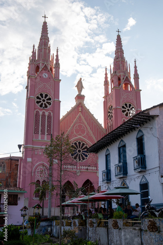 Naklejka premium pink church in a town in latin america