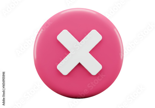 Obraz premium Pink circular button with a white cross symbol, indicating cancellation or...