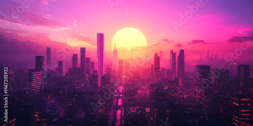 © Asim, Fototapeta premium Pink City Sunset Skyline