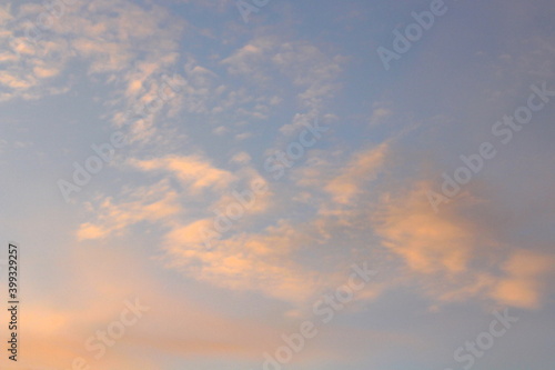 Obraz premium Pink clouds illuminated by the sun at dawn or sunset. Evening or morning...