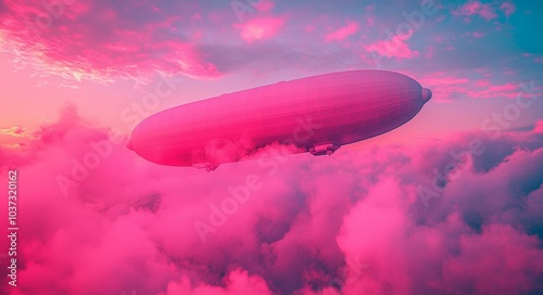© Gayan, Obraz premium Pink Clouds with a Steampunk Hot Air Balloon
