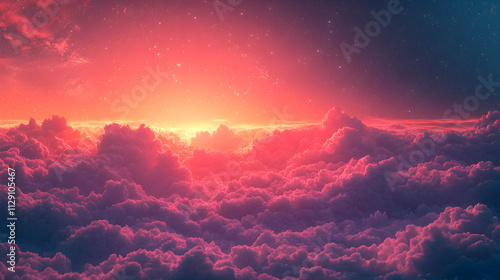 © ali, Fototapeta premium Pink Cloudscape Above a Starry Sunset Sky