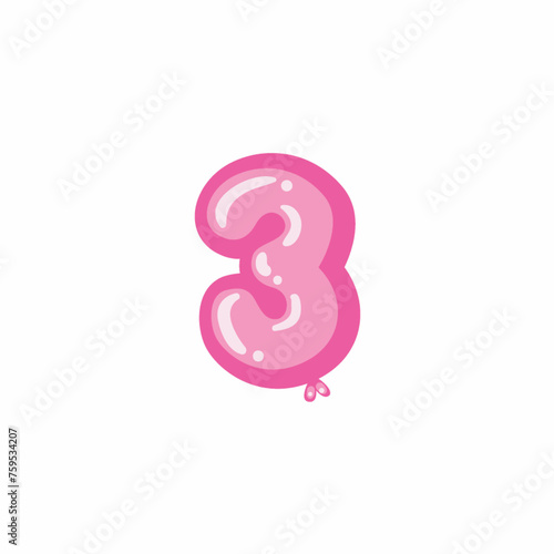Fototapeta premium Pink Color 3 Counting Number, Cartoonish Counting white Background JPG