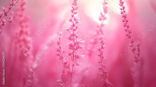 Obraz premium Pink color landscape with pink flowers blooming