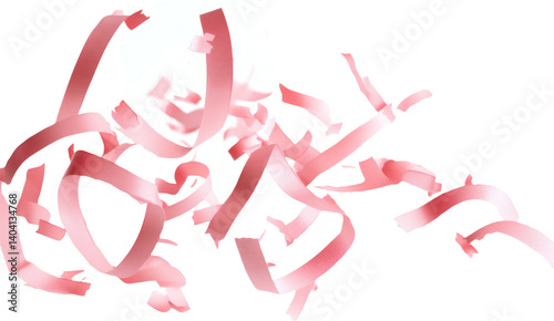 © Abdul, Fototapeta premium Pink confetti ribbons flying in air on transparent background