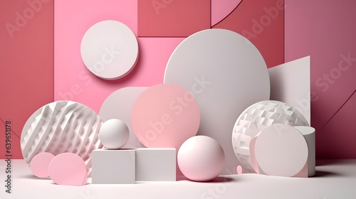Fototapeta premium Pink coral Paper cut art, folded geometric shapes, abstract background