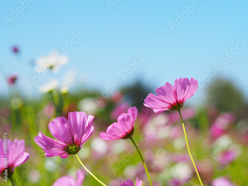 Fototapeta premium pink cosmos blooming over clear blue sky