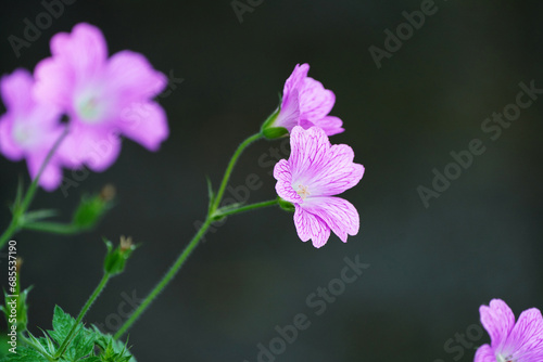 Fototapeta premium Pink cranesbill flowers. Flowering plant close up. Geraniaceae.