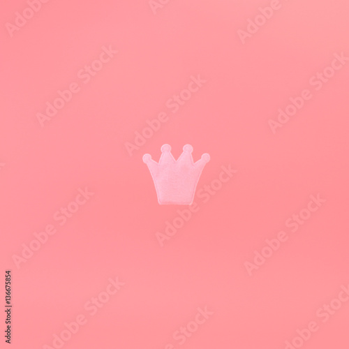 Obraz premium Pink crown on a pink background. Minimal concept photo. Avatar.