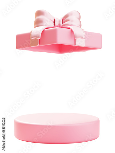 © mamewmy, Fototapeta premium Pink 3d gift box podium with open present lid stage for celebration surprise and display