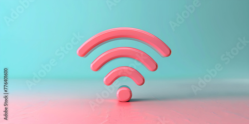 © Gabriela, Fototapeta premium Pink 3D illustration of Wi-Fi symbol, cyan background