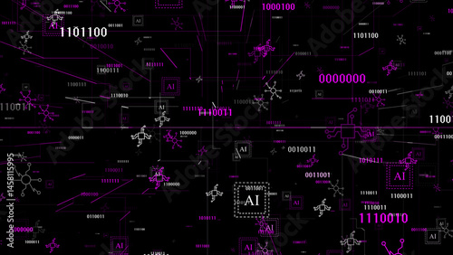 © Chandresh, Fototapeta premium Pink 3d technology element artificial intelligence matrix black background , cyberspace background