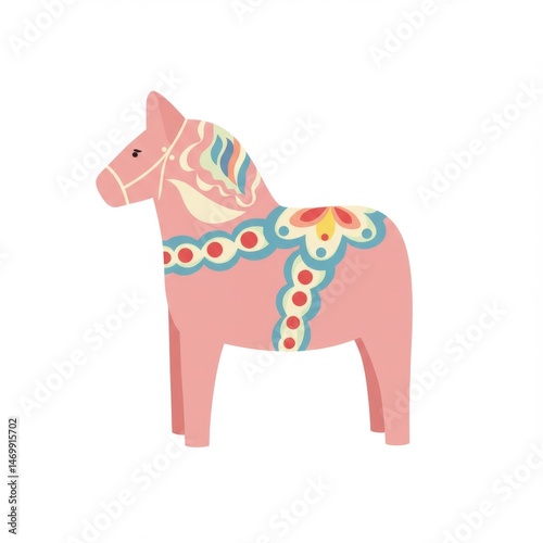 © AkshataHay, Fototapeta premium Pink Dala Horse Illustration on White Background