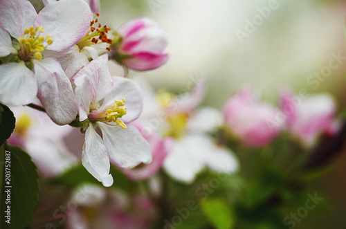 Obraz premium Pink delicate and fragrant apple blossoms in spring