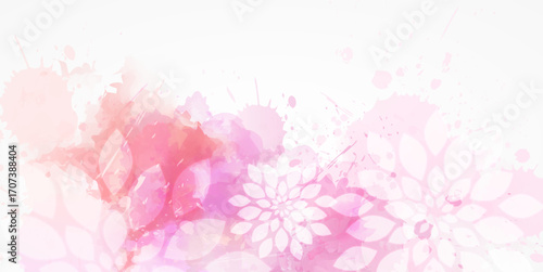 © Artlana, Fototapeta premium Pink delicate watercolor background with floral elements. Template for horizontal banner