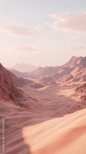 Naklejka premium pink desert landscape with sand dunes at sunset