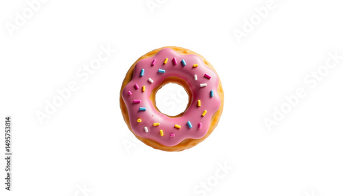 © Maliwan, Obraz premium Pink Donut with Sprinkles Floating on a White Background