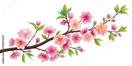 Obraz premium Pink Doodle Cherry Flowers and Green Leaves Decoration