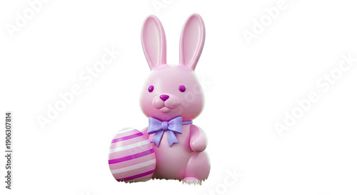 © sunarsoradenkkez, Obraz premium Pink Easter Bunny with Striped Egg and Bow