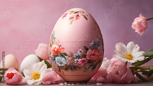 Fototapeta premium Pink easter eggs with flowers