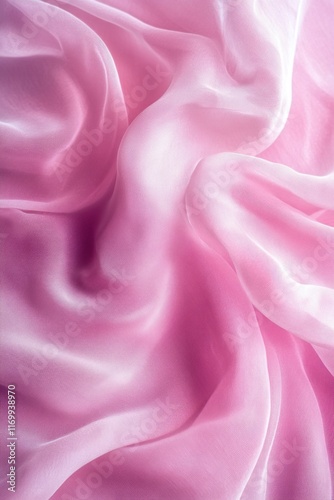 Obraz premium Pink fabric with a wave pattern. The fabric is soft and smooth to the touch. The color pink is dominant throughout the image, giving it a feminine and elegant feel