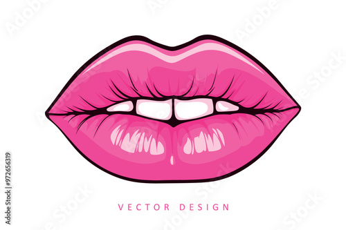 © krissikunterbunt, Obraz premium pink female lips minimalist vector design isolated illustration
