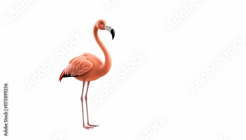 © awan toklo, Fototapeta premium Pink flamingo against white background. Possible use for greeting cards or children's books
