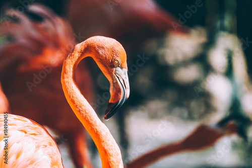 © radub85, Obraz premium Pink Flamingo Bird Portrait In Wilderness