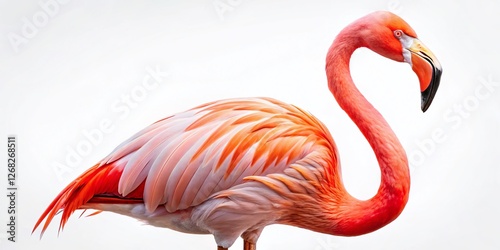 © Sirinporn, Obraz premium Pink Flamingo Bird Portrait, Isolated on White Background, Candid Photography