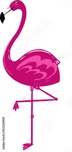 Obraz premium Pink flamingo design is featuring curved neck and white beak in vector with transparent background