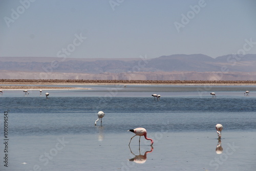 © Abbey, Fototapeta premium pink flamingo in Chile salt lake flat