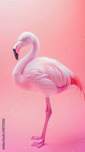 © KP, Obraz premium Pink Flamingo on Pink Background.