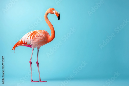 Fototapeta premium Pink flamingo standing gracefully against a bright blue background with vibrant colors