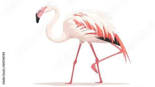 Fototapeta premium Pink Flamingo standing on one leg, head turned sideways, legs crossed