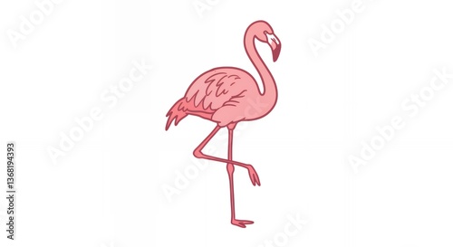 Naklejka premium Pink Flamingo Standing Still on One Leg Isolated on White Background
