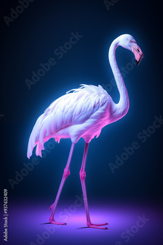 © EdvvinStudios, Fototapeta premium Pink flamingo standing under neon lights