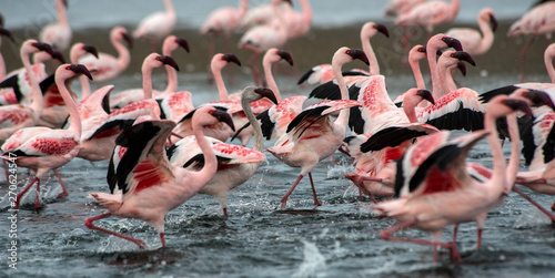 Fototapeta premium Pink flamingoes at Walvis Bay, Namibia